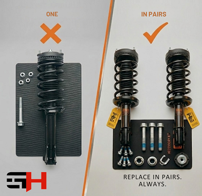 Dlatego zaleca się zawsze wymianę zawieszenia parami (lewa + prawa strona tej samej osi).